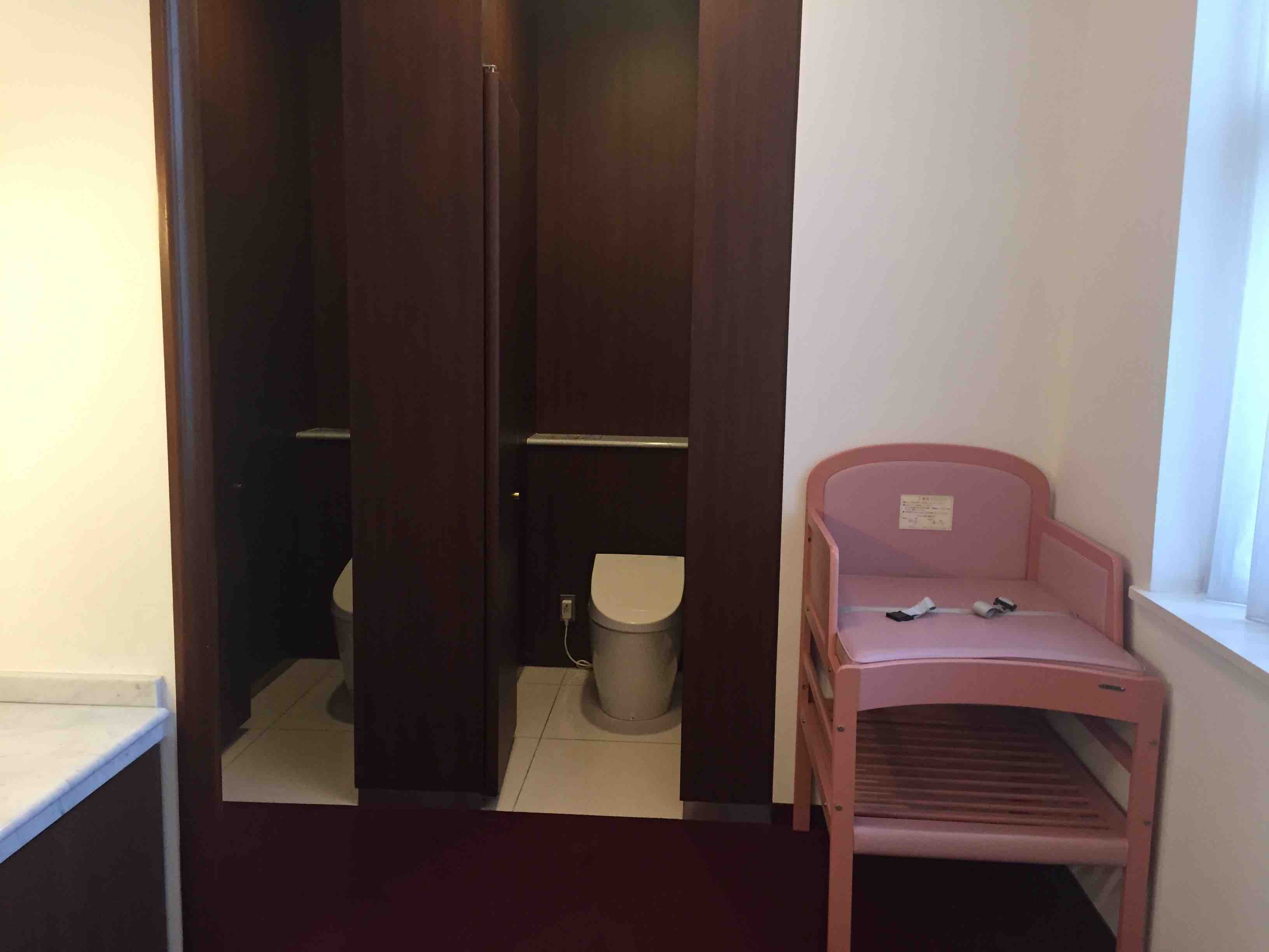こんなに歴史があっても、トイレは綺麗で最新式。かつ、子連れにうれしいベビーベット付き!