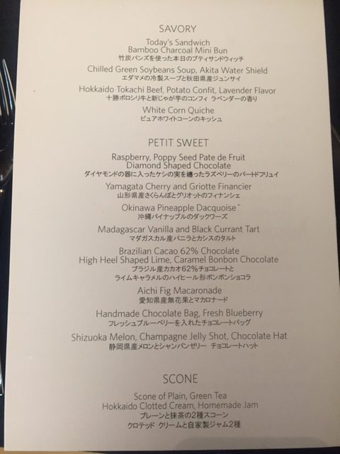 ブラックアフタヌーンティーのスイーツメニュー、打ち込むのが大変なので、メニューをそのまま掲載。