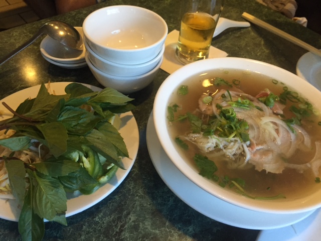 さらにフォー。日本だと、ここまでいっぱい臭い草やら薬味がついてこないので、そういう意味では、本場そのもの。ただ、フォー自体が小綺麗なのがハワイな感じです。