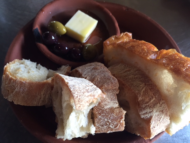 最初に付け合わせのパンが届きますが、これがまたおいしい。フランスパンの固いところ以外、すべて娘に食べられてしまいましたが(苦笑)。