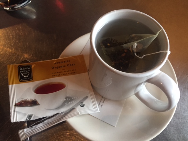 ハーブティーや紅茶はティーパックで出るだろうな、と思って、「チャイ」を頼んだら、チャイもティーパックでした・・・。コーヒー文化の土地ではやむなし。